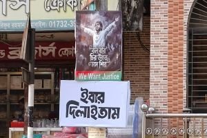 বড়লেখার মোড়ে মোড়ে সিলেটি ভাষার ফেস্টুন ‘ইবার দিলাইতাম’