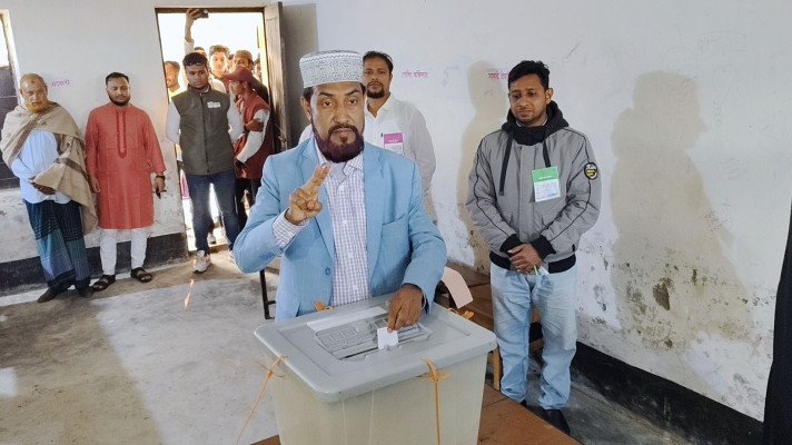 সিলেট-৬ আসনে জামায়াত প্রার্থী সেলিম উদ্দিনের ভোট প্রদান